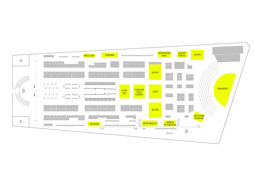 Площадки «ГОЛОС РБК» (new!), «КНИЖНЫЙ КЛУБ / КОСМОС», «СЦЕНА» (new!), ЗАЛ №1 и ЗАЛ№2 – это ЦЕНТРАЛЬНАЯ аллея экспозиции.